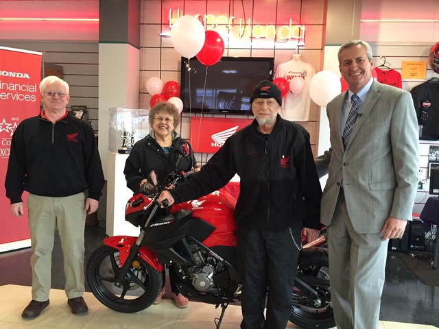 Customer Loyalty is important in the auto industry because it is the repeat customers that will continue to bring in business for generations to come. One such loyalty Honda customer, Harry Adler, is a Motorcycle enthusiast and has purchased nearly every bike that he has ever owned from Honda. Recently Adler was presented with the keys to a 2015 Honda CB300F by the automaker in honor of his years of loyalty. This new gift will now be the 55th Honda Motorcycle that Adler has owned in the years of riding Honda’s. Previous models that he owned included the CBR250R, CRF230M, a VTX1800C and a Helix scooter.
