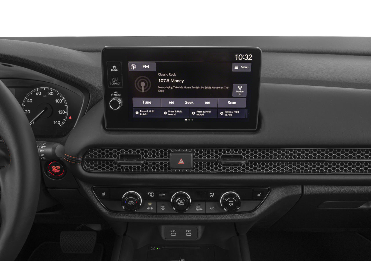 - Radio: 180-Watt Audio System w/6 Speakers -inc: 9" color touchscreen, wireless Apple CarPlay and Android Auto compatibility, Bluetooth® HandsFreeLink and streaming audio, 3.0A USB-C data/charging port in front console, Qi wireless phone charger, HondaLink (select HondaLink features are complimentary, Check vehicle compatibility at https://mygarage.Honda.com/s/Hondalink-product-compatibility) and Speed-Sensitive Volume Compensation (SVC)